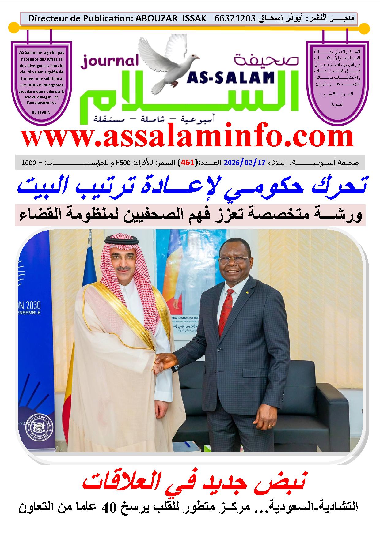 February 17, 2026العدد 461 لصحيفة السلام، الصادر صباح اليوم الثلاثاء 17 فبرايـــر 2026ميلادية