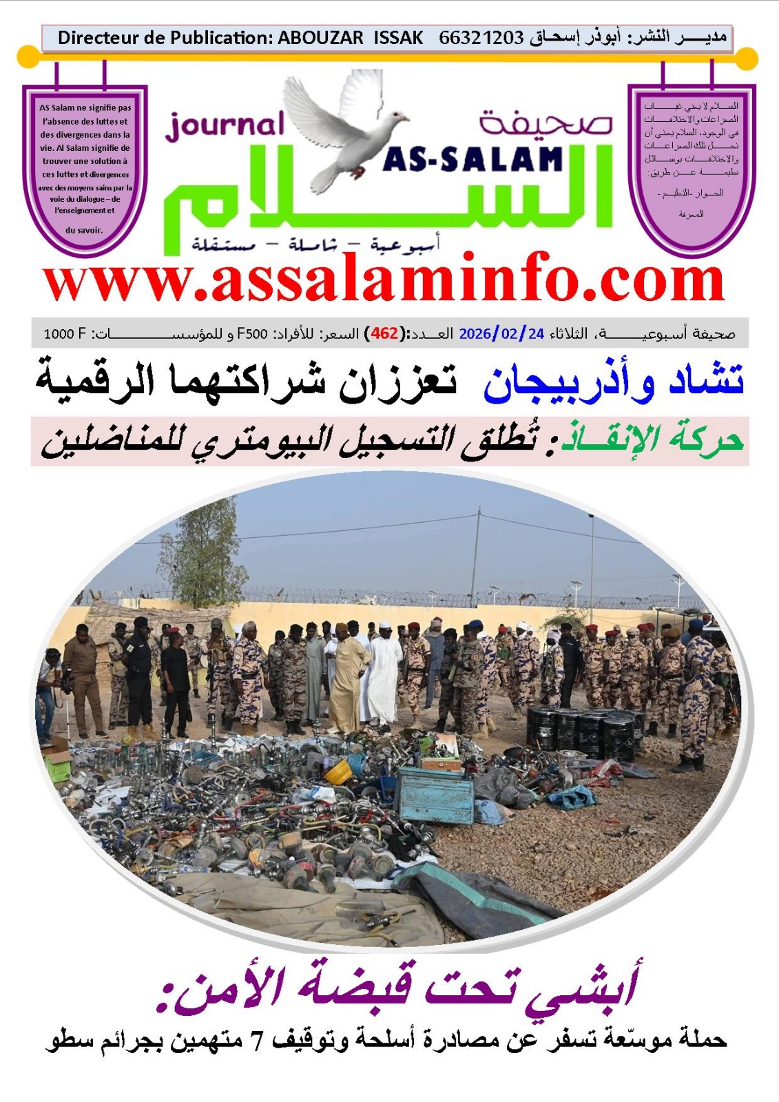 العدد 462 لصحيفة السلام، الصادر صباح اليوم الثلاثاء 24 فبرايـــر 2026ميلادية